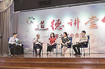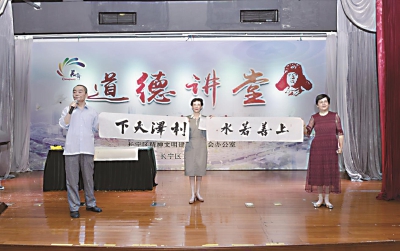 □记者 陆骏健 6月28日由周家桥街道承办的“党建引领新时尚 垃圾分类修身行”长宁区道德讲堂在区图书馆顺利举办。周家桥街道党工委副书记、纪工委书记蒋寒青,武装部部长翟国强,区文明办、街道各办、中心负责人及各居民区书记、居民区代表等近200人参加会议。 活动伊始,“吾日三省吾身”,与会人员静心闭幕,在心中默问,日常生活中我们有没有做到低碳生活?生活垃圾的四分类我都清楚了吗?做到了吗?随后,周家桥街道诗韵社现场解读《德道经》的第八章《上善若水》,书法老师现场书写《上善若水 利泽天下》。接着,蒋寒青、翟国强为“垃圾分类我先行创意无限你最行”周家桥街道垃圾分类达人颁奖。在垃圾分类pk赛环节,以主办方的“完败”收场,居民们的实力不容小觑!正确答出所有题目。现场还邀请了大家源居民区党支部书记杨富娣、虹桥万博物业经理严怀宏、中山公寓业委会委员陆旭、范北居民区党总支书记王约櫊现场接受访谈,分享推进垃圾分类工作中酸甜苦辣、经验与感悟。