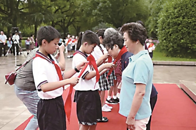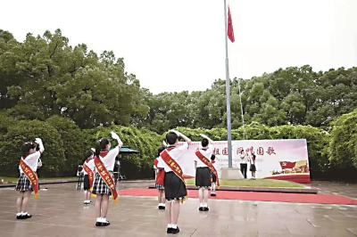 编者按:青年,充满活力;青春,勇于奋斗。青年兴则国家兴,青年强则国家强。周家桥街道团工委一直致力于服务社区广大青年,不论你是生活还是工作在这里,都可以来到团工委这个大家庭,在这里你可以接触社区、结交好友、参与活动……“青春周桥”每期都将为你送上最年轻活力的动态,让你感受MAX的青春力。 7月1日上午,“国旗下成长”上海青少年升国旗主题活动之“我爱祖国,同唱国歌”长宁区青少年纪念中国共产党成立98周年主题活动,在上海宋庆龄陵园举行。周家桥街道全体团员、关工委代表,区市场监管局青年代表、长宁路小学学生代表等参加活动。 伴随着《少先队出旗曲》熟悉的旋律,升旗手与护旗手们昂首挺胸,迈着整齐的步伐走到升旗台前。 当激昂的《义勇军进行曲》响起时,升旗手振臂一挥,鲜艳的五星红旗徐徐展开,飘扬在上海宋庆龄陵园的上空。 来自长宁路小学的少先队员们进行了爱国主题宣讲和红歌演唱,他们稚嫩的脸庞,坚毅的眼神无不透露着对中国共产党的向往和对宋庆龄奶奶奋斗的一生感到的敬佩。 长宁路小学的少先队员们合唱《没有共产党就没有新中国》,并为少先队社区志愿辅导员们表达敬意,献上红领巾。