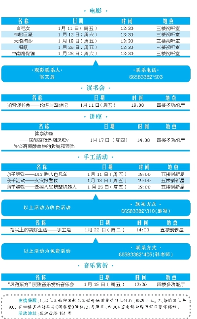 社区文化活动中心1月活动预告
