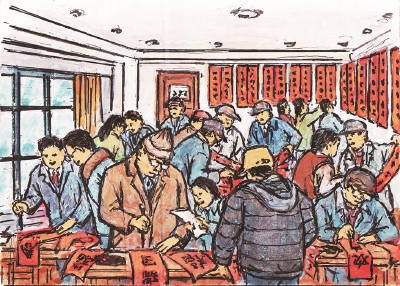 □绘图/配诗 蒋振国(光华坊居民92岁)撰文 张翠玲 每到春节,家住静安区永兴路595弄的92岁老人蒋振国爷爷,心心念念要完成两件事,为本报画封面年味图是其中之一,颇有仪式感。 2020年1月过大年,比往年早,蒋振国12月初就考虑起约稿的内容来。画什么呢?“羊年的时候,羊在人们心中的口碑好,我画了三只羊,寓意三羊开泰。去年是猪年,民间有人说猪有福气但也有说猪懒的,毁誉参半,我没有画猪,画了写有‘新春好’的红灯笼。”蒋振国叹了一口气,发愁地说:“今年是鼠年,这就比较难办喽。”在他看来,形容老鼠的词就没有一个是好词,老鼠过街人人喊打嘛。有人启发他画米老鼠,他义正言辞地拒绝:“春节是中国的传统佳节,过中国节就要画出中国味。米老鼠我知道的,是舶来品。”最终,蒋振国决定,今年的报头画红梅。 蒋振国每月还有固定的“作业”要交——在《芷江西社区晨报》文化版连载六幅原创的连环画作品,至今已连载了三百余幅。每到春节,他照例要画一画春节的主题,讲述以前过春节的习俗和他记忆中的过年场景。蒋振国对自己的画有严格的要求,过几天要拿出画来端详检查,如若发现哪里不满意,就坚持要重画。“有时,临近截稿,重画一整幅来不及,他就重画不太满意的部分,画好了再剪切和粘贴上去。”蒋振国打趣地说,这是他独创的“打补丁”修改法。 要过年了,而蒋振国心心念念的另一件事是请几个孩子吃团圆饭。“他们都是从农村来的,父母务工供他们在这里上学不容易,而党和国家对我这个老干部很好,我什么都不缺,能帮到别人一点就尽力帮。”蒋振国口中的孩子都是在附近上学的小学生,每个周末都来他这里练字学画,蒋振国不仅分文不收,过年了还请他们一起吃团圆饭。家长们不好意思地说:“应该是我们来报答您,哪有老师请学生吃饭的!”而孩子们则高兴地说道:“蒋振国比我的亲爷爷对我还要好。”听了孩子们的话,蒋振国哈哈大笑起来。