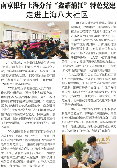 南京银行上海分行”鑫耀浦江“特色党建 走进上海八大社区